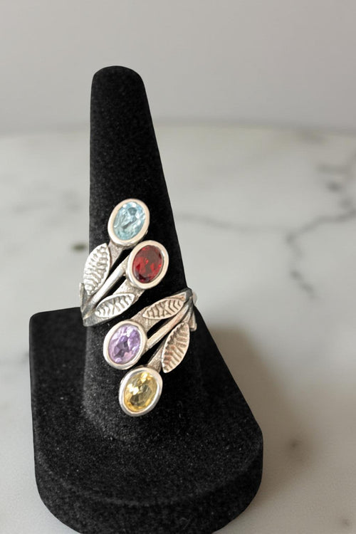 Adjustable Citrine, Amethyst, Garnet, Topaz Ring